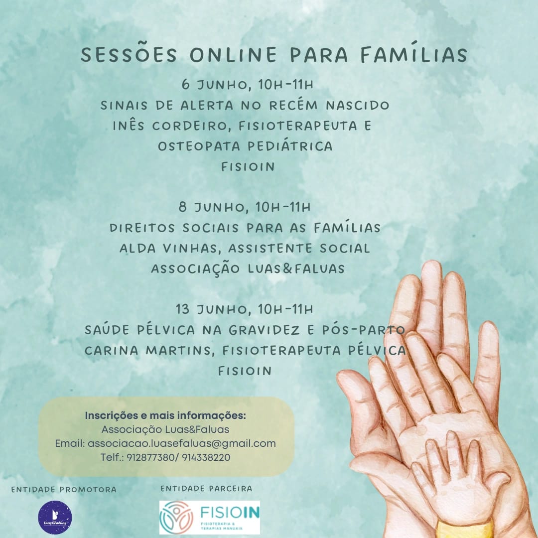8 junho, das 10h às 11h - Direitos Sociais para as famílias, com Alda Vinhas, Assistente Social, Associação Luas&Faluas