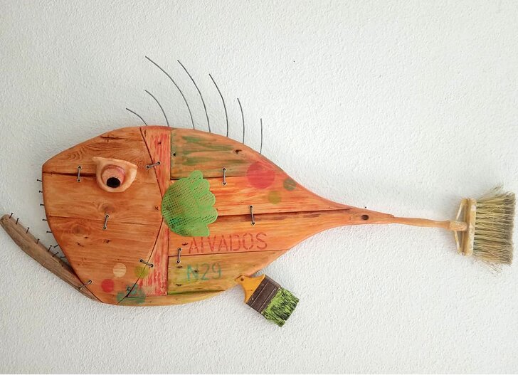 Criação de peças de arte originais e sustentáveis, a partir da recolha de lixo na praia e nas ruas de São Pedro de Moel no dia anterior.