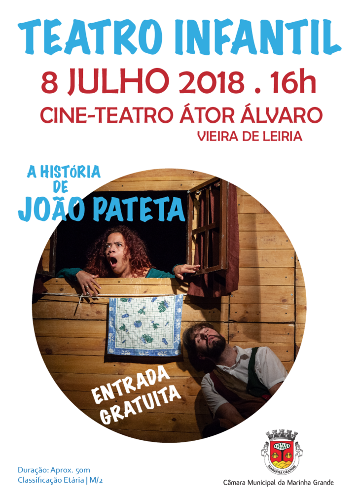O Cine-Teatro Actor Álvaro, situado no Largo da República, em Vieira de Leiria, recebe a peça de teatro infantil “A História de João Pateta”, pela Porta 27 Associação Cultural, no próximo domingo, 8 de julho, pelas 16h00.