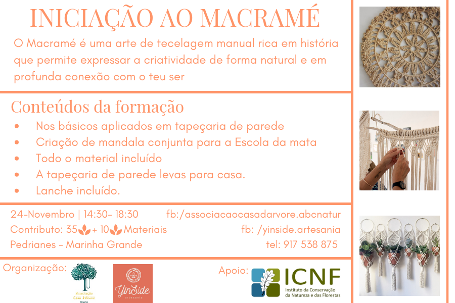24-Nov: Workshop de Iniciação ao Macramé - 45€, das 14:30 às 18:30.