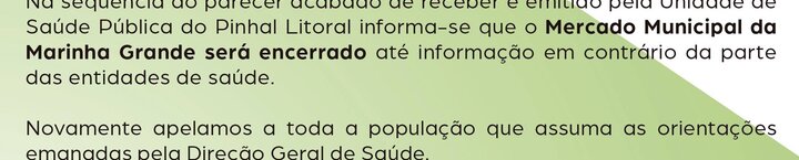 COMUNICADO - MAIS MEDIDAS DE PREVENÇÃO - ENCERRAMENTO DO MERCADO DA MARINHA GRANDE