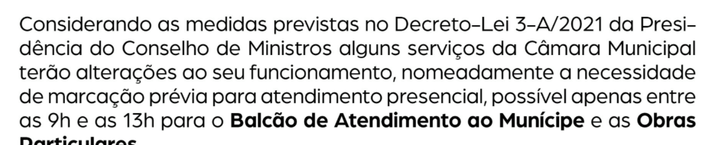 COMBATE À PANDEMIA COVID-19 - Alterações ao funcionamento de serviços municipais