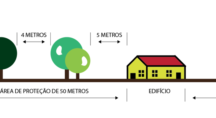 3 - As copas das árvores e dos arbustos devem ser distanciadas, no mínimo, 5 m da edificação;