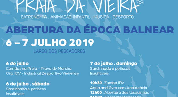 A tradicional sardinhada e animação cultural regressam à Praia da Vieira, na freguesia de Vieira de Leiria, para assinalar a abertura da época balnear. Trata-se de uma iniciativa já bem conhecida na região, que atrai, todos os anos, milhares de pessoas, pela sardinhada, pelos espetáculos de animação musical e etnográficos.