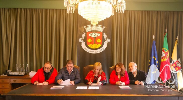 A presidente da Câmara Municipal da Marinha Grande, Cidália Ferreira, e os presidentes das Associações Humanitárias dos Bombeiros Voluntários de Marinha Grande e de Vieira de Leiria, Carlos Carvalho e Célia Fernandes, respetivamente, assinaram no dia 13 de dezembro, no Edifício dos Paços do Concelho, protocolos de cooperação, para a atribuição de verbas que totalizam 315 mil euros.