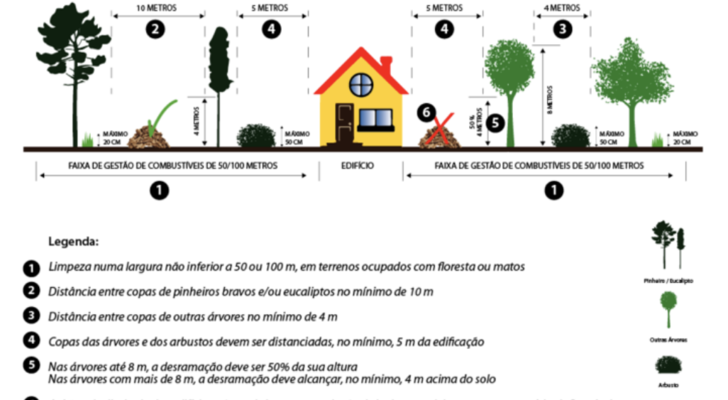 3. São ainda obrigados a garantir que as copas das árvores e dos arbustos se mantenham distanciadas no mínimo 5 metros das edificações, evitando-se ainda a sua projeção sobre a cobertura dos edifícios, conforme previsto no ponto III, n.º 1 do Anexo ao diploma mencionado;
