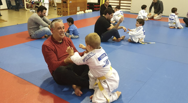 É um dos momentos mais desejados pelos pequenos praticantes de Judo, a possibilidade de treinar com os seus familiares...