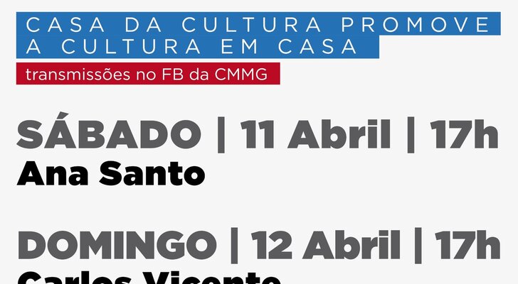 Estão agendadas as seguintes atuações da iniciativa "Casa da Cultura promove a Cultura Em Casa”: