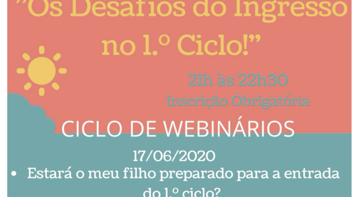 Psicologia: realizar uma série de três webinários, em torno dos desafios do ingresso no 1º ciclo, dando especial ênfase ao caso dos alunos condicionais. O primeiro webinário, intitulado “Estará o meu filho preparado para a entrada do 1o ciclo?” terá lugar no próximo dia 17 de junho; o segundo, intitulado “Escutar o pensamento, Sentir as Emoções” terá lugar no dia 24 de junho e o terceiro, “Regresso às aulas, e agora?”, realiza-se no dia 9 de setembro, todos entre as 21h00 e as 22h30.