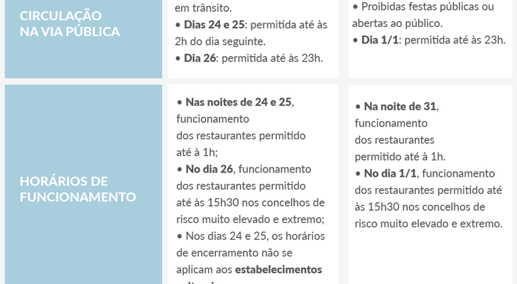 O decreto mantém, no essencial, as regras atualmente vigentes e estabelece medidas especiais para os períodos do Natal e do Ano Novo. Assim, o Governo decidiu:
