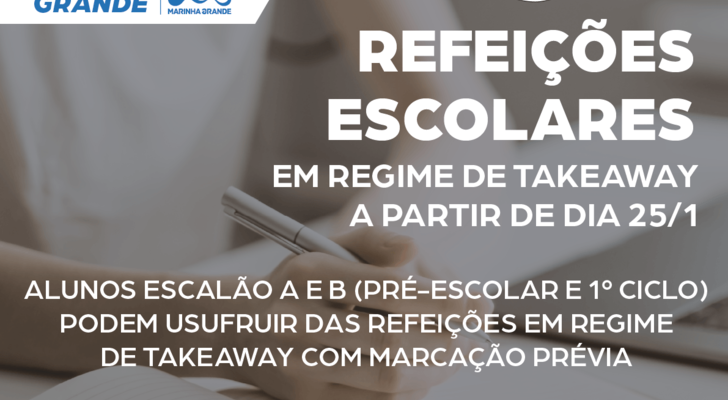 Os pais dos alunos do ensino pré-escolar e 1.º ciclo abrangidos pela ação social escolar, escalão A e B, poderão marcar, a partir de sexta-feira, 22 de janeiro, as refeições em regime de takeaway. Este serviço entrará em funcionamento a partir de segunda-feira, dia 25 de janeiro.