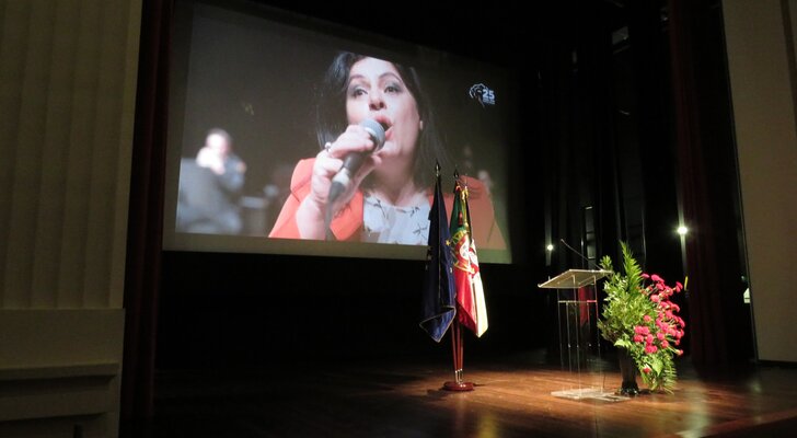 A iniciativa culminou com a entoação do Hino Nacional “A Portuguesa”, por Luísa Oliveira, acompanhada por elementos da Orquestra Juvenil da Marinha Grande, gravado no Teatro Stephens.