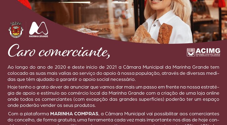 Esta plataforma está a ser criada pela Câmara Municipal com o objetivo de ajudar os comerciantes Marinhenses a preparar o futuro.