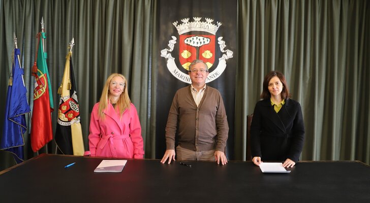 O Município da Marinha Grande formalizou uma parceria com a Associação Novo Olhar II, para o apoio à dinamização do Projeto “Santana - Equipas de Rua", cujo protocolo foi assinado na manhã desta segunda-feira, 15 de novembro, no Salão Nobre dos Paços do Concelho, entre o presidente da Câmara, Aurélio Ferreira, e a presidente da Associação, Ana Patrícia Quintanilha, na presença da vereadora da Ação Social, Ana Alves Monteiro.