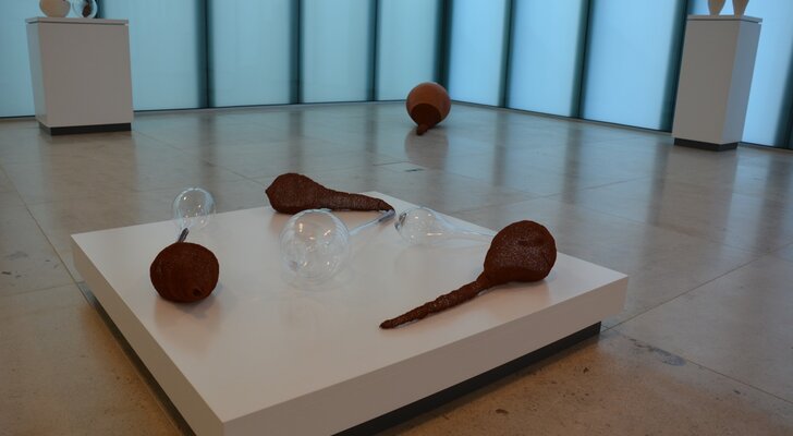 Na exposição “Transumância: Atmosfera”, patente no Núcleo de Arte Contemporânea do Museu de Vidro da Marinha Grande, é apresentado um conjunto novo de obras que emergem do solo, idealizadas e concebidas para este espaço.