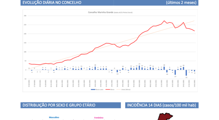 O concelho da Marinha Grande continua com uma elevada taxa de incidência de casos positivos de Covid-19, por 100 mil habitantes.