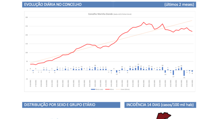 A taxa de incidência de casos positivos de Covid-19, por 100 mil habitantes, continua a aumentar no concelho da Marinha Grande.