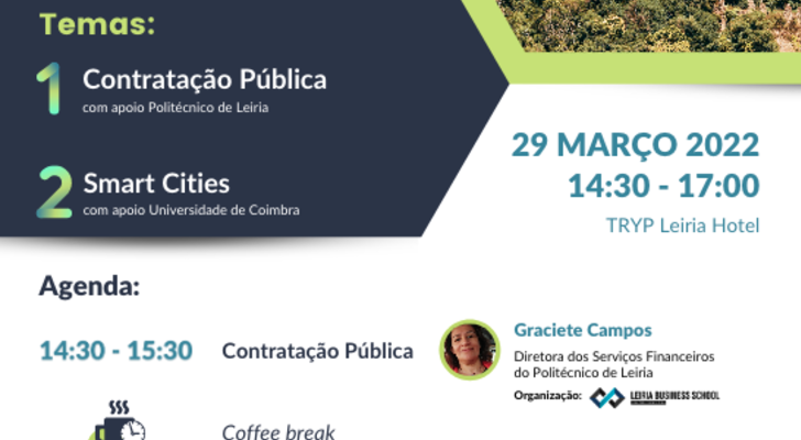 Nesta primeira sessão formativa, a área da contratação pública será apresentada por Graciete Campos, Diretora dos Serviços Financeiros do Politécnico de Leiria, e a temática das “cidades inteligentes” estará a cargo de Jorge Sá Silva, professor do Departamento de Engenharia Eletrotécnica da Universidade de Coimbra.