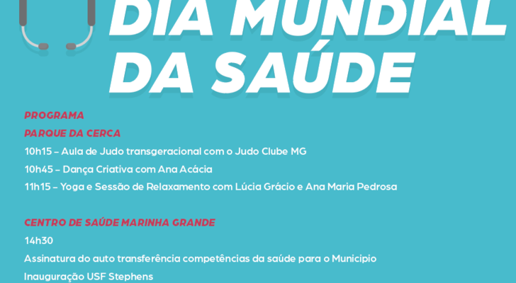 O Município da Marinha Grande vai comemorar o Dia Mundial da Saúde, através da inauguração da Unidade de Saúde Familiar (USF) Stephens, uma homenagem aos profissionais de saúde e um programa de atividades físicas e lúdicas, dedicadas ao tema “Vida Saudável”, que decorrem no dia 7 de abril.