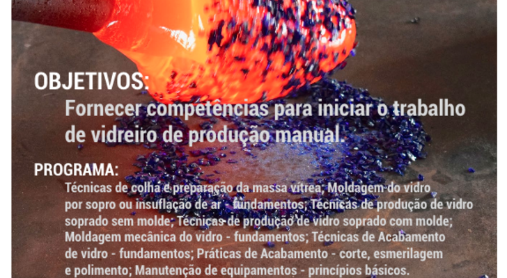 Inscreva-se gratuitamente no Percurso Modular de Vidreiros, no Cencal da Marinha Grande e receba bolsa de formação, subsídio de refeição e de transporte e possibilidade de alojamento.