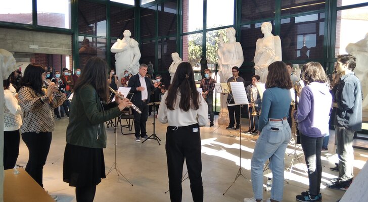 Depois da apresentação de cada salas e do destaque de algumas das suas peças, pela técnica do Museu, Cátia Cavaco, os alunos tocaram as peças musicais que tinham estudado e o maestro Élio Fróis descreveu o trabalho que tinha sido feito, apresentando professores e alunos em cada grupo instrumental.