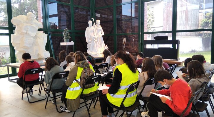 A partir das aguarelas e óleos de temática da natureza (mata e praias), falou-se sobre património natural; a partir das estátuas alusivas ao vidro, falou-se sobre o património industrial; e explorando a estátua de Afonso Lopes Vieira foi feita referência ao património literário. A visita terminou com a leitura de um poema de Afonso Lopes Vieira e o desenho à vista da respetiva estátua.