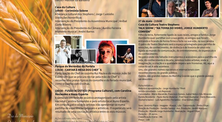 A Câmara Municipal da Marinha Grande vai comemorar o Dia do Município (Quinta-Feira da Ascensão), no próximo dia 26 de maio, feriado municipal, numa cerimónia solene, a decorrer no Teatro Stephens, na qual irá atribuir distinções honoríficas a cidadãos do concelho que se tenham destacado numa determinada área, e através de um evento cultural e gastronómico, a realizar no Parque de Merendas da Portela, com a participação dos músicos João Só e Carolina Deslandes e do Chef de cozinha Rui Paula.