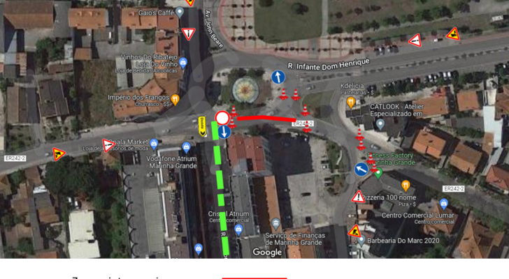 O trânsito proveniente da Rua de São Pedro utilizará o itinerário de desvio através da Rua das Portas Verdes, em direção à Rua Dr. José Henriques Vareda.