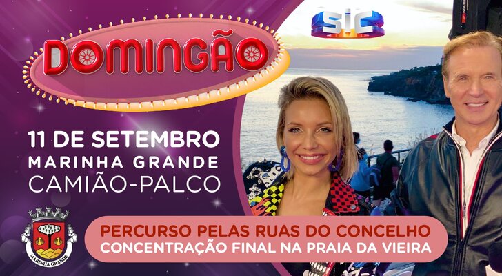 O concelho da Marinha Grande vai receber o palco móvel do programa “Domingão”, no próximo domingo, 11 de setembro, das 14h00 às 20h00, para transmissão, em direto, na SIC.
