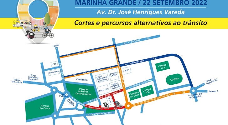 A Avenida Dr. José Henriques Vareda vai estar encerrada ao trânsito, entre o Parque da Móbil e a Rotunda com a Rua Eng. Arala Pinto, para receber muitas atividades.