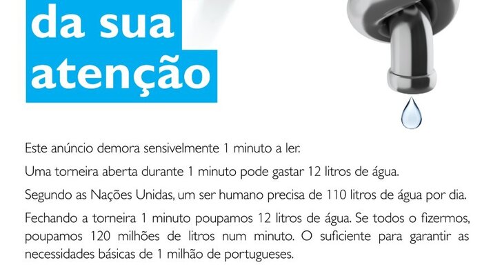 A iniciativa tem o objetivo de alertar para a necessidade de reduzir o consumo de água, tendo em conta a situação de seca que se vive de momento no país. Esta campanha está incluída nas medidas previstas no Plano de Prevenção, Monitorização e Contingência para Situações de Seca aprovado pela Comissão Permanente de Prevenção, Monitorização e Acompanhamento dos Efeitos da Seca.