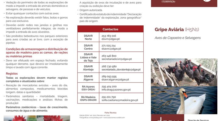 Mais informação sobre esta doença pode ser encontrada no portal da DGAV em https://www.dgav.pt/animais/conteudo/animais-de-producao/aves-de-capoeira/saude-animal/doencas-das-aves/gripe-aviaria/