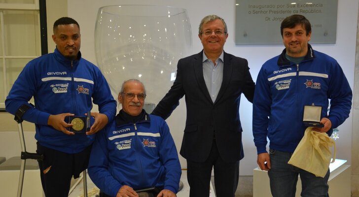 Aurélio Ferreira felicitou os atletas Iderlino Gomes e Marco Francisco e o assistente da seleção nacional e vice-presidente da delegação de Leiria da Associação Portuguesa de Deficientes (APD), Manuel Sousa, pelo título alcançado no passado mês de novembro, na primeira edição do Campeonato do Mundo e da Europa de andebol em cadeira de rodas, frente aos Países Baixos.