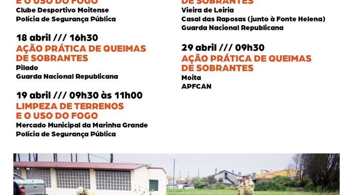 A Câmara Municipal da Marinha Grande, através do Serviço Municipal da Proteção Civil (SMPC), organiza ações de sensibilização para a prevenção de incêndios, cuja participação é gratuita.