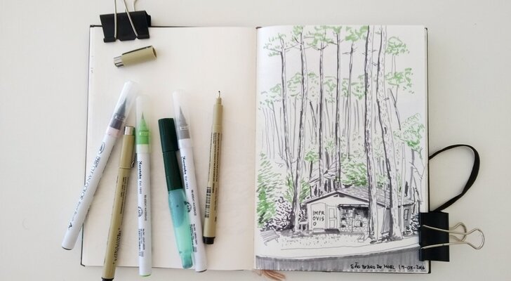 Cada participante deverá trazer um caderno de desenho (formato A5 é prático, mas pode ser outro) de folha branca, material de desenho que goste de usar (canetas, lápis, marcadores, outros) e umas molas para prender as páginas dos cadernos.