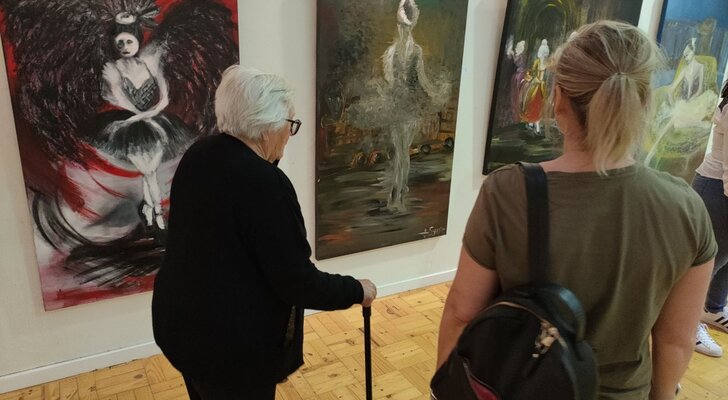 Estão patentes 35 obras, que retratam o ballet, uma das paixões da pintora, a propósito da comemoração do Dia Mundial da Dança, que se assinala a 29 de abril.