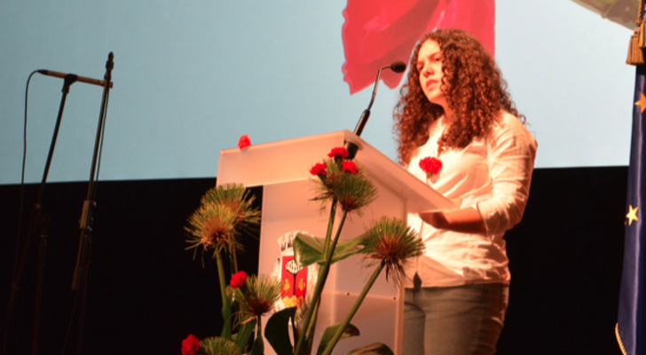 DISCURSO DA ALUNA MARGARIDA MALPIQUE NA SESSÃO DA ASSEMBLEIA MUNICIPAL EVOCATIVA DO 49.º ANIVERSÁRIO DO 25 DE ABRIL DE 1974