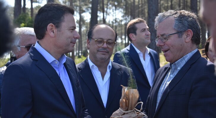 Aurélio Ferreira e Luís Montenegro caminharam, ainda, juntos por um troço da mata, numa visita que culminou com a oferta de um pinheiro por parte do PSD, num gesto simbólico para com o autarca marinhense.
