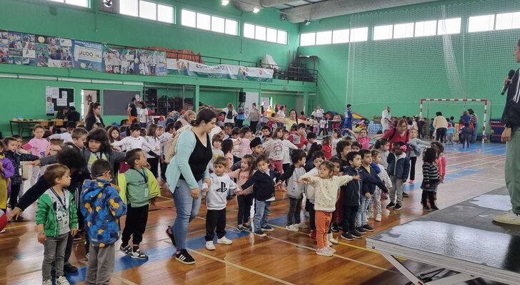 Hoje decorreu a abertura da Festa da Criança 2023, no pavilhão desportivo da Escola Básica Guilherme Stephens, na Marinha Grande, onde se realizaram atividades desportivas, dança, animação com figurantes e outras atividades lúdicas para 400 crianças do ensino pré-escolar.