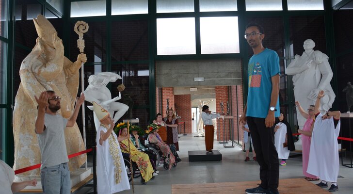 Em março e abril, os utentes da APPACDM vieram ao Museu Joaquim Correia em residência artística, de modo a criar relação com o Museu, a sua arquitetura e as obras do Mestre Joaquim Correia, personagens também elas do texto dramatúrgico de Paulo kellerman. Inicialmente, o trabalho desenvolveu-se nas instalações da APPACDM e, a partir de maio, os ensaios adensaram-se e passaram a desenrolar-se no Museu Joaquim Correia. O trabalho será, finalmente, apresentado ao público nos dias 22, 24 e 26 de junho.