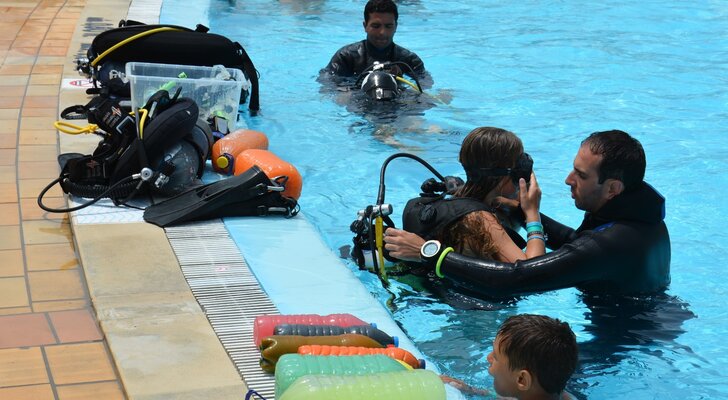 Para além de usufruírem dos vários equipamentos e piscinas do parque aquático, as crianças puderam usufruir de experiências de mergulho para recolha de resíduos.