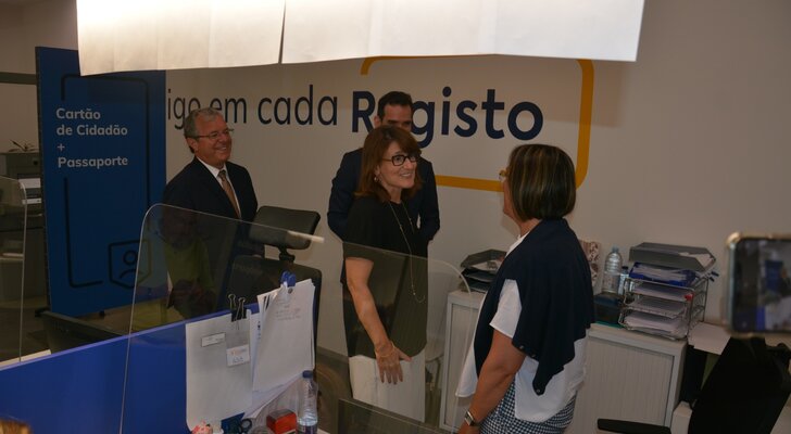 A visita contou também com a presença do presidente da Câmara Municipal da Marinha Grande, Aurélio Ferreira; do secretário de Estado da Justiça, Pedro Tavares; e da presidente do Instituto de Registos e Notariado (IRN), Filomena Rosa.