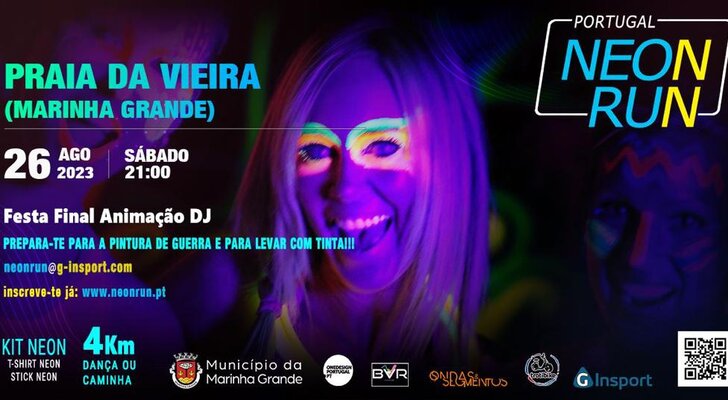 A Praia da Vieira, no concelho da Marinha Grande, vai receber uma onda de luzes, som, atividade desportiva e muita diversão, no dia 26 de agosto, a partir das 21h00, no Largo dos Pescadores, na corrida noturna NEON RUN TOUR 2023.