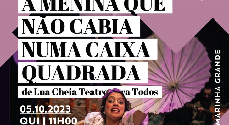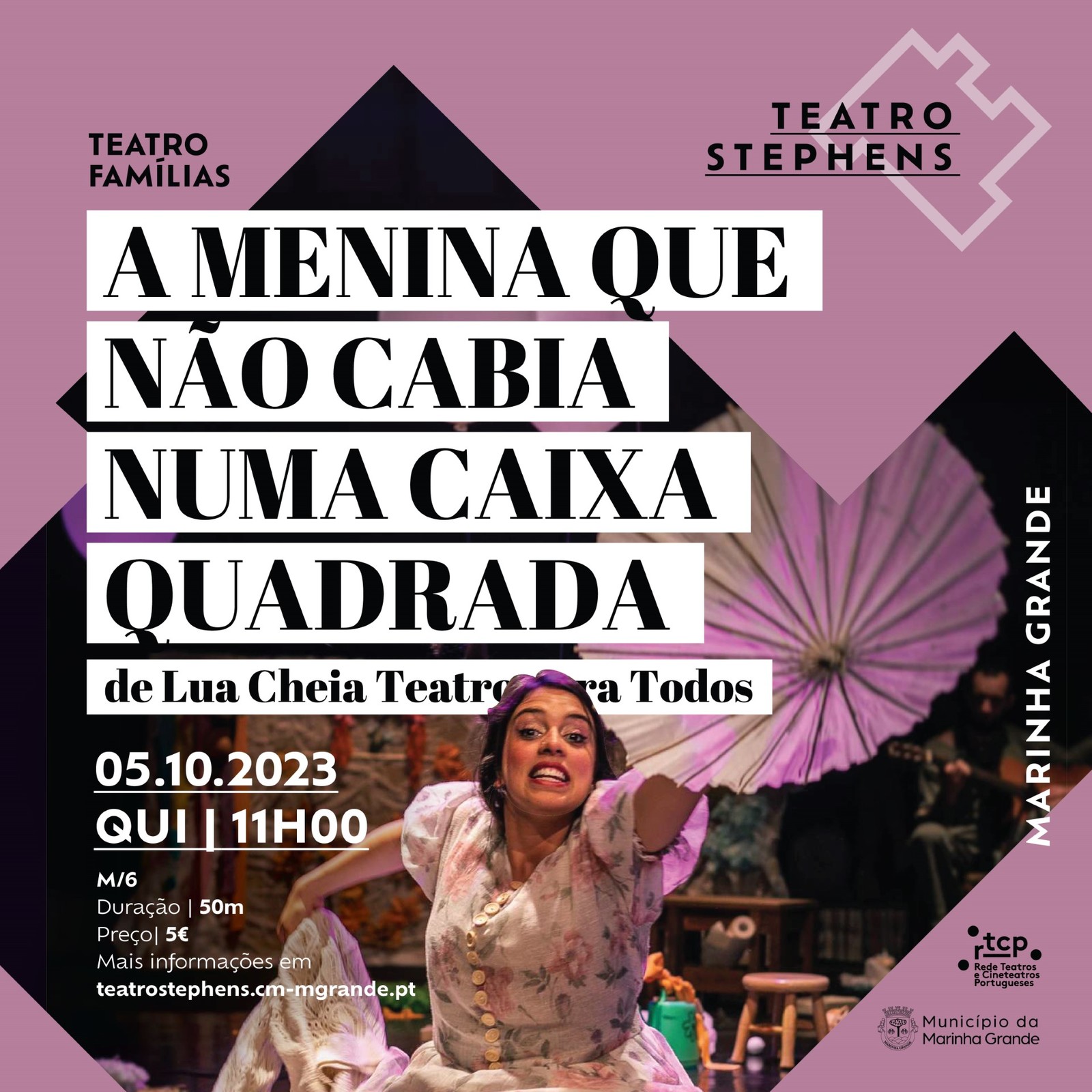 No dia 5 de outubro (feriado), pelas 11h00, o Teatro Stephens, na Marinha Grande, apresenta o espetáculo para toda a família “A Menina que não cabia numa caixa”, pela companhia Lua Cheia - Teatro para Todos, com texto e encenação de Sandra José, acompanhado de música tocada e construída ao vivo, com inspiração nos pensamentos das crianças.