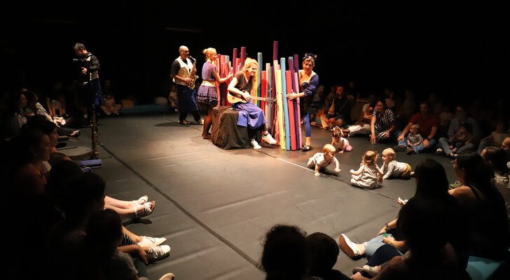 Música, voz, movimento, sons, palavras, cores, texturas e muita interação, foram os ingredientes deste espetáculo intitulado “Dançam palavras, nascem bebés”, que fez as delícias dos tenros espectadores e suas famílias.