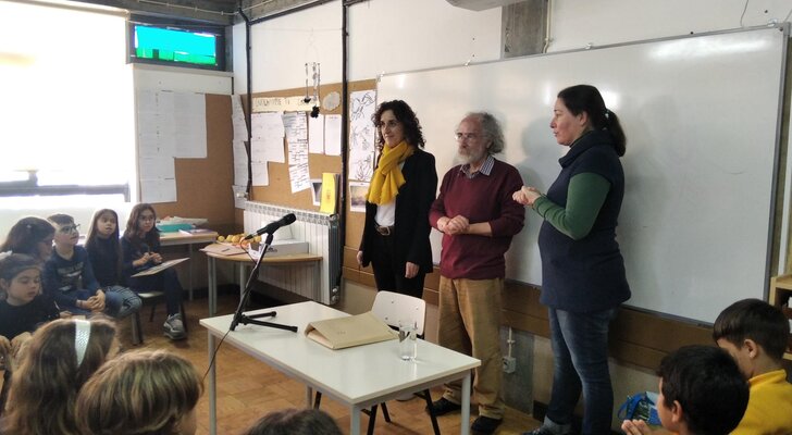 As crianças questionaram Pedro Correia acerca da vida e obra do seu pai, manifestando entusiasmo por poderem contar com a colaboração do filho do artista na preparação da exposição. Para além de informações biográficas, o arquiteto partilhou referências ao lugar de Casal de Malta e pormenores da planta da escola.