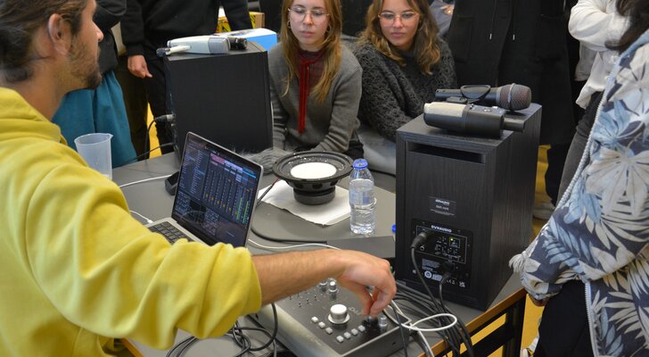 A iniciativa é concretizada nas turmas do 12.º ano de Artes Visuais e do curso profissional de Multimedia. Pretende trabalhar e desmistificar processos científicos e de pensamento conceptual, aliados às práticas de criação sonora. Numa primeira fase, são desconstruídos conceitos básicos dos fundamentos do áudio e tecnologias associadas e, posteriormente, são propostos exercícios de reflexão com base na escuta crítica e ativa.