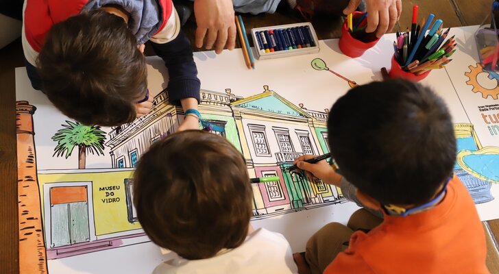 O Museu do Vidro recebeu na tarde deste domingo, 24 de março, a oficina de desenho e pintura colaborativa para famílias “Pintar (n)o Museu”, no âmbito da Semana do Turismo Industrial.