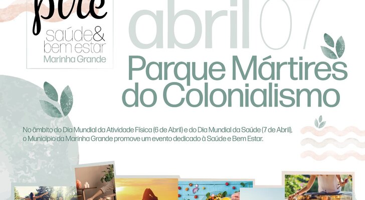 O Município da Marinha Grande vai comemorar o Dia Mundial da Atividade Física (6 de abril) e o Dia Mundial da Saúde (7 de abril), com a atividade “INSPIRE - Saúde e Bem Estar”, que decorre no dia 7 de abril (domingo), das 10h00 às 18h00, no Parque Mártires do Colonialismo.