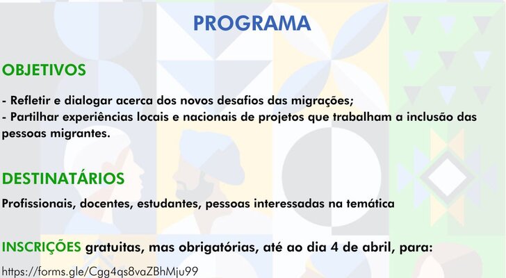 14h00 – 16h30 | Painel 3: Integrar os migrantes é uma missão impossível? - Apresentação de Projetos desenvolvidos a nível nacional e local no âmbito da integração das Comunidades Migrantes